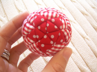 Nota: Para pendurar a bola, formar uma laçada com fita de cetim (ou outra) e prender na bola com um alfinete sem cabeça.